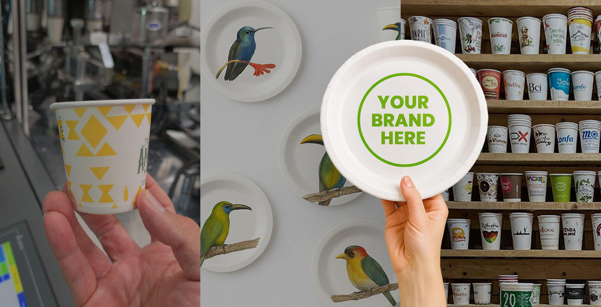 Compostable and recyclable products designed for a lower environmental impact, made from raw materials sourced from responsibly and sustainably managed forests.